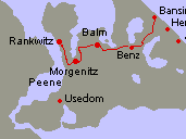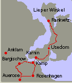 Auf dem oben beschriebenen Weg gelangt man nach Usedom. Von dort geht